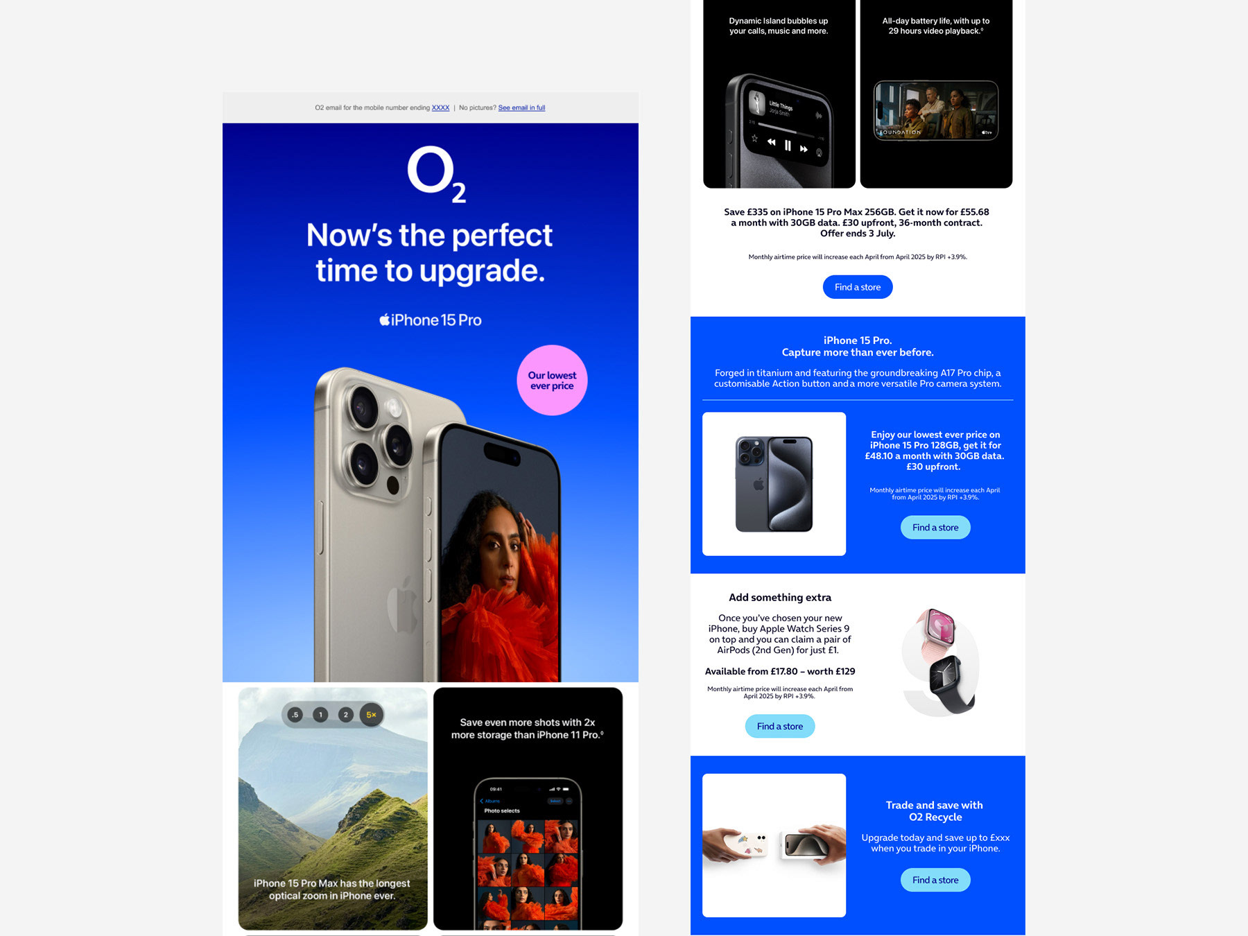 A collection of emails, MMS, and banner comms for O2 I worked on whilst working at the agency RAPP.
